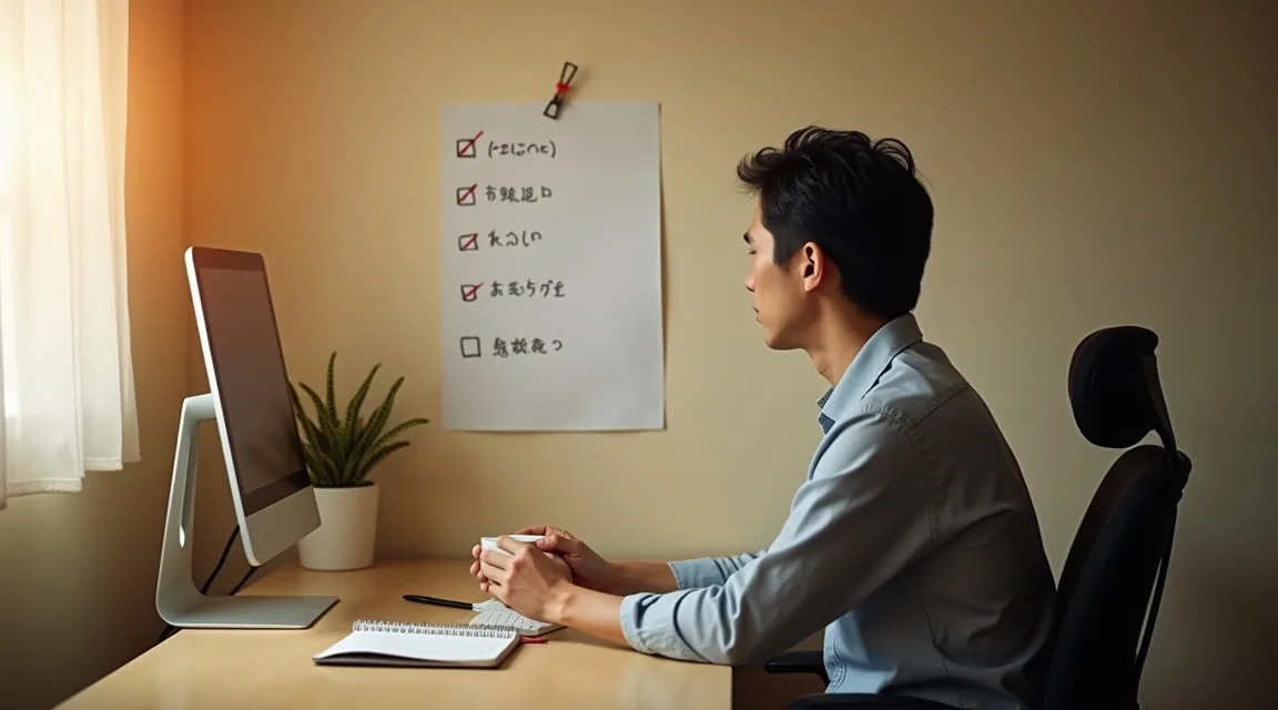 午前6時ちょうど。彼はコーヒーを淹れ、デスクの前に座る。壁に貼られた手書きのチェックリスト。「①チャート確認 ②経済指標確認 ③前日振り返り ④本日の計画」。この四つのステップを毎朝同じ順番でこなすことが、彼の一日の始まりだ。まだ7時前。家族はまだ眠っている。窓の外で鳥が鳴き始めていた。急ぐ必要は何もない。今日も同じように始める。それがすべてだ。