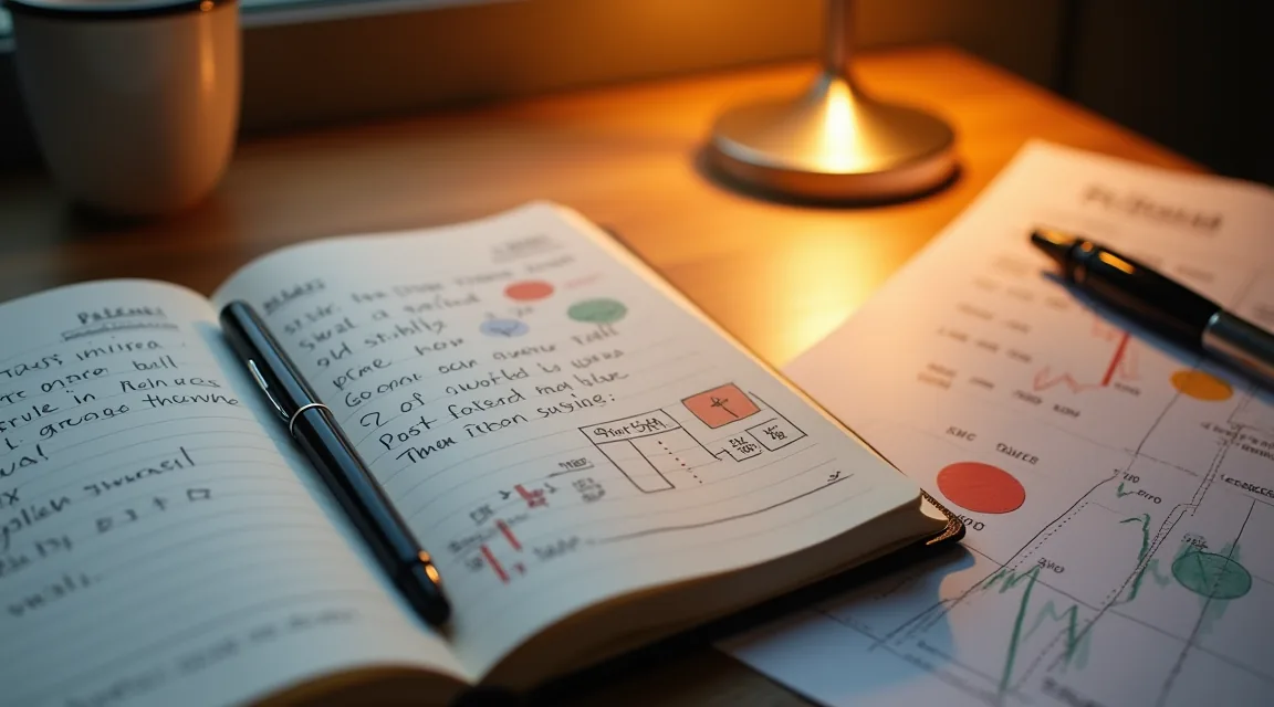 私のおすすめは「記録時は手書き、分析時はデジタル」のハイブリッド方式です。具体的には、トレード直後にスマートフォンのメモアプリで5分フォーマットを埋め、週次レビューのときにスプレッドシートに転記して集計します。「感情の深掘り」をしたい週は、ノートに手書きで振り返りを加えてみてください。手で書くことで、画面上では気づかなかった感情のパターンが浮かび上がることがあります。
